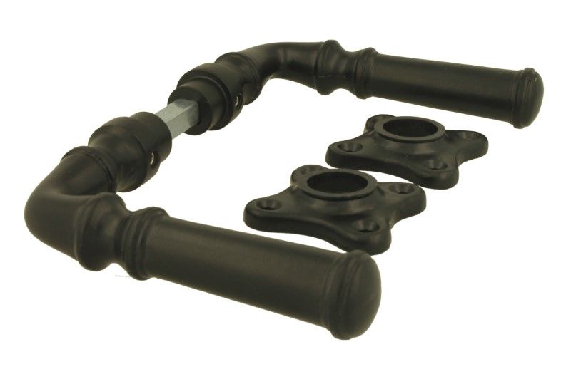 Deurklink gietijzer poedercoat klassiek model klaver rozet