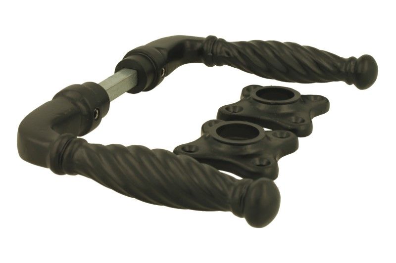 Deurklink gietijzer zwart met getordeerde greep klaver rozet