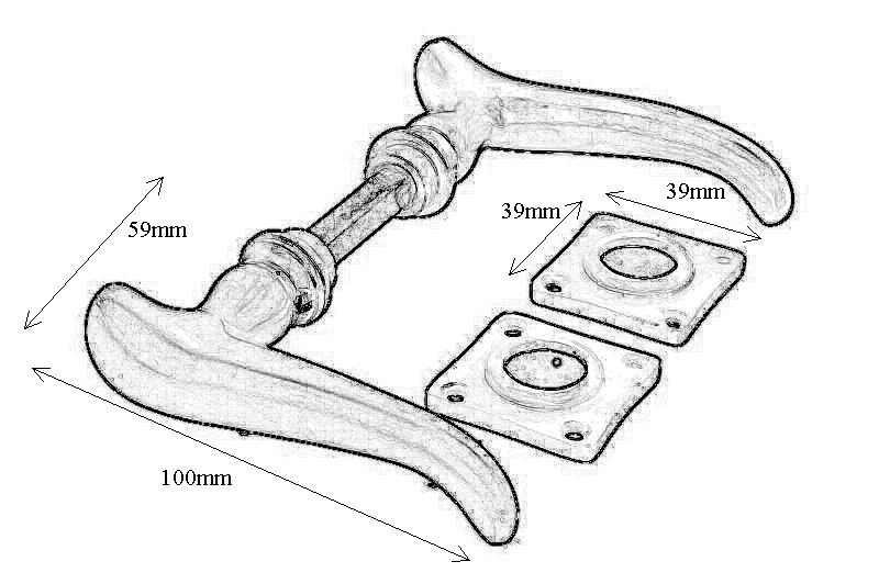 Deurklink ongelakt messing stel (1909)