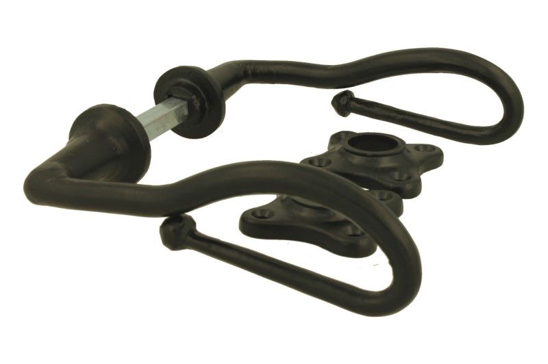 Deurklink opengewerkt, smeedijzer gepoedercoat klaver rozet