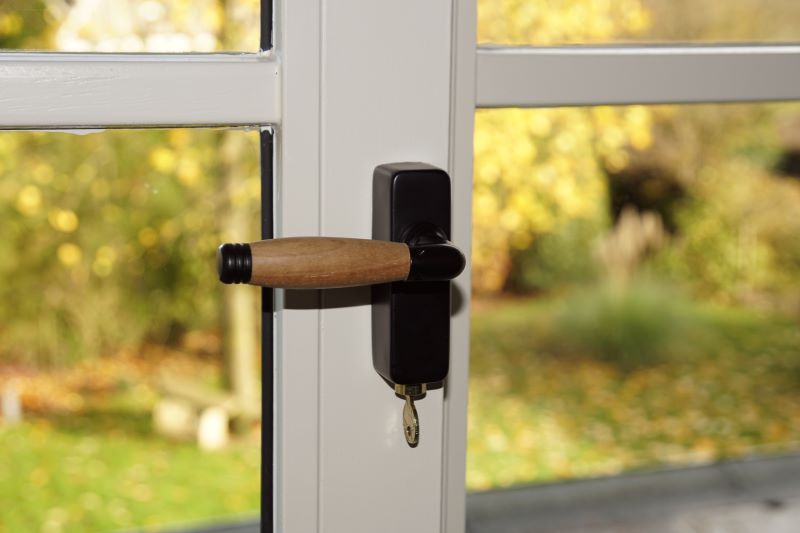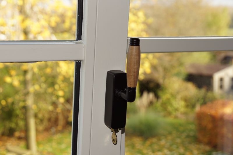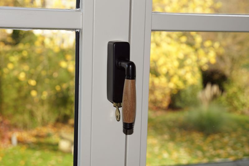 Draaikiep greep met slot in gietijzer poedercoat teak