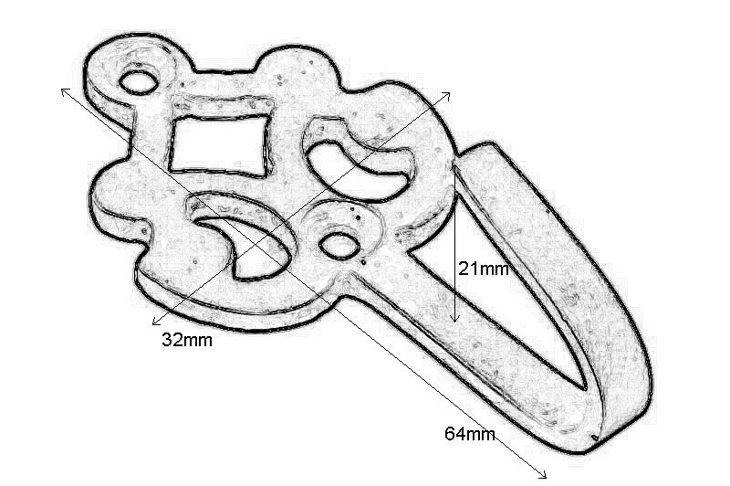 Haakje ongelakt messing Diepte 21mm, 32x64mm