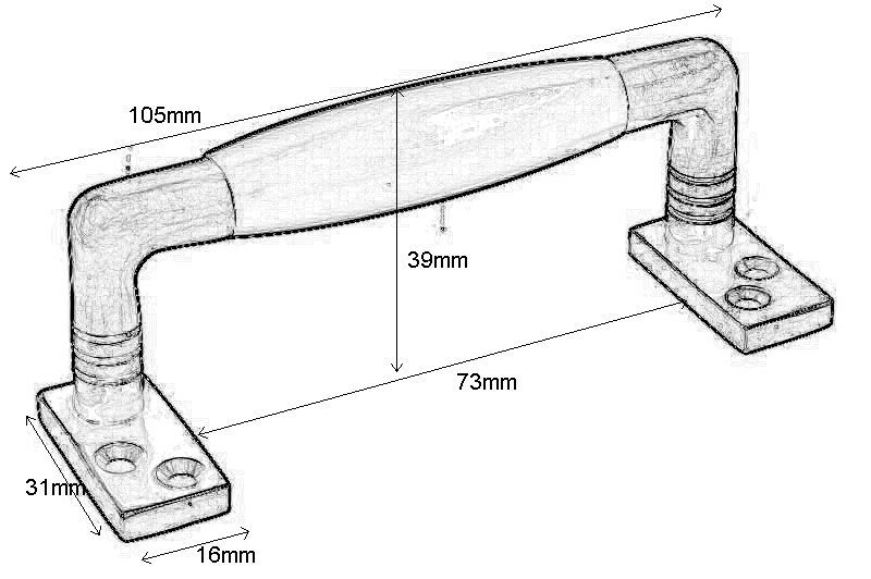 Handgreep 105mm ongelakt messing ebbenhout