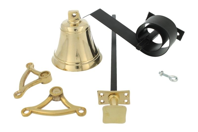 Vierkante knop, bel, veer, 2x tuimelaar, trekstang met rozet